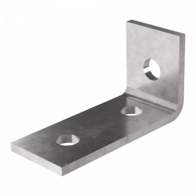 Пластина угловая 90 градусов 3 отверстия - Г-образного вида металлическая пластина толщина материала 5 мм. одно круглое отверстие на коротком плече, два отверстия на длинном плече d=12 мм. Применяется для соединения отрезков страт-профиля между собой под углом 90 градусов, для этого используется страт-гайка и болт соответствующего диаметра.